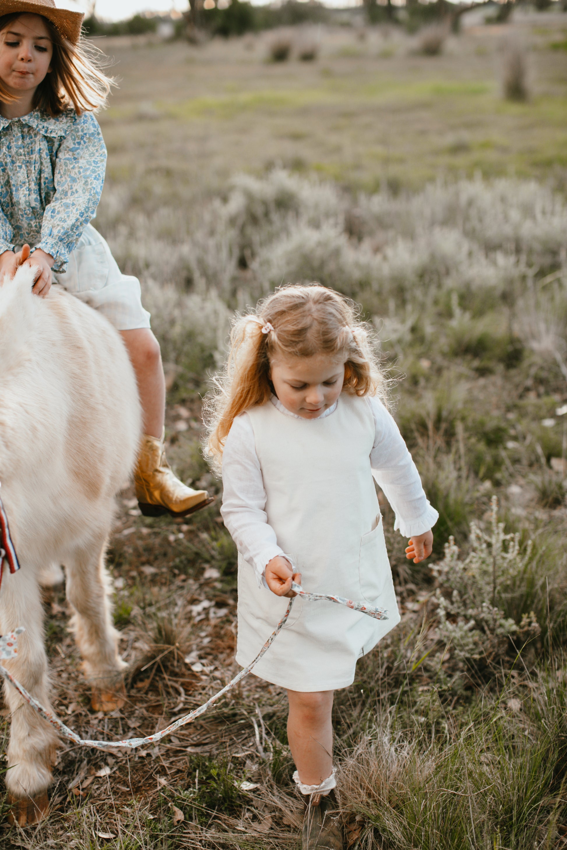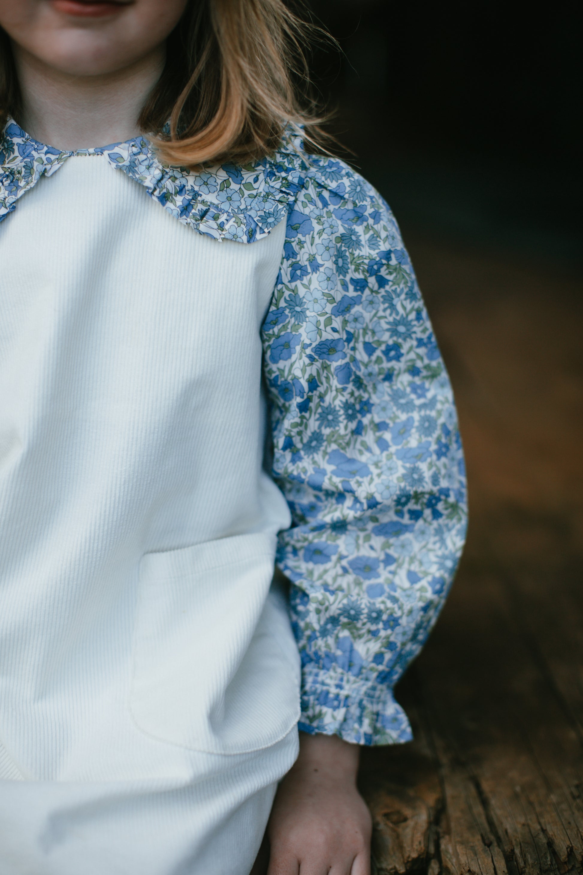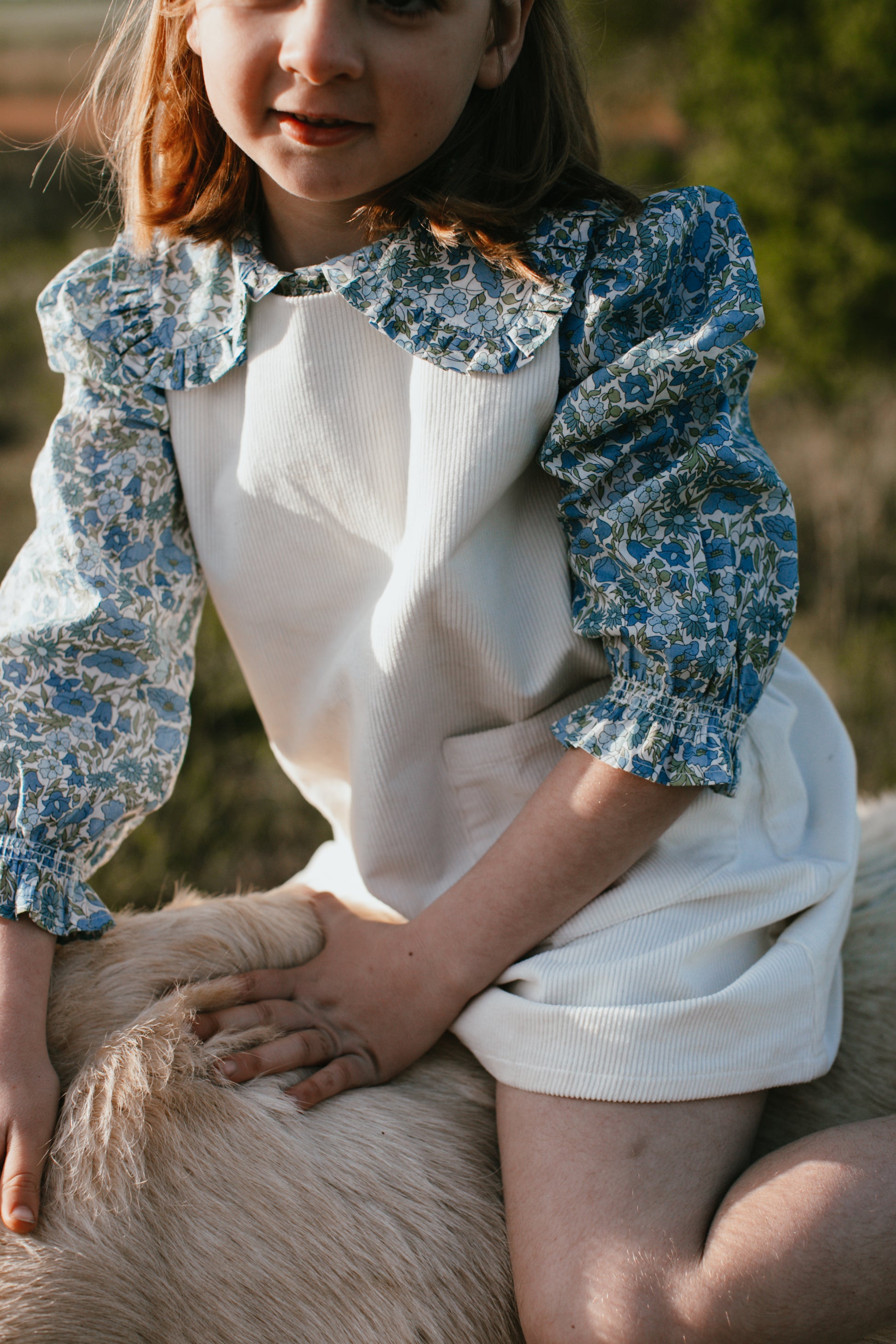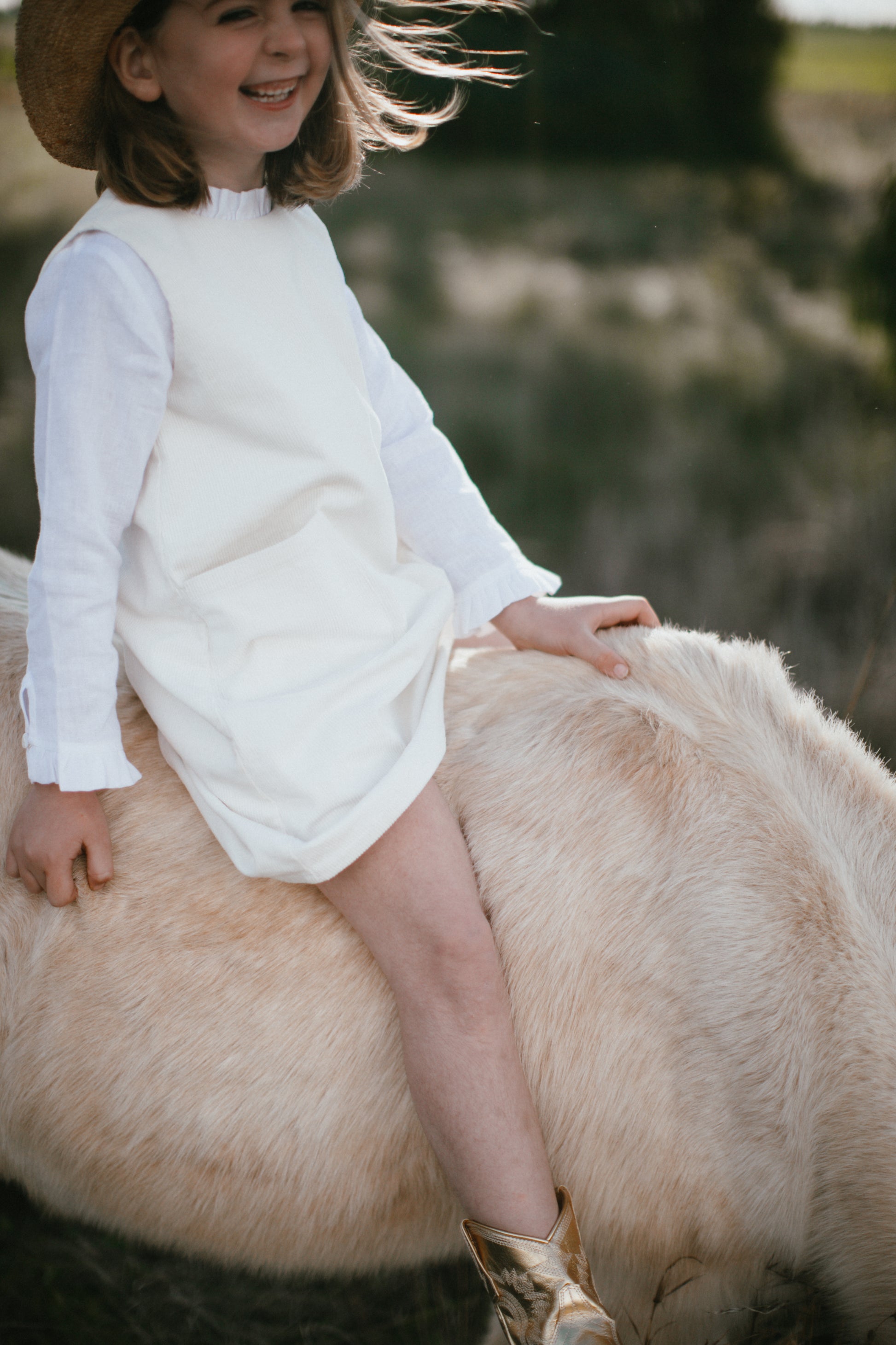 Our dreamy Lovey Pinafore in a deliciously soft , milk coloured baby corduroy might just be the most romantic and versatile piece you will own. A nod to the nostalgia of childhood from a bygone era with its sweet vintage vibe.
